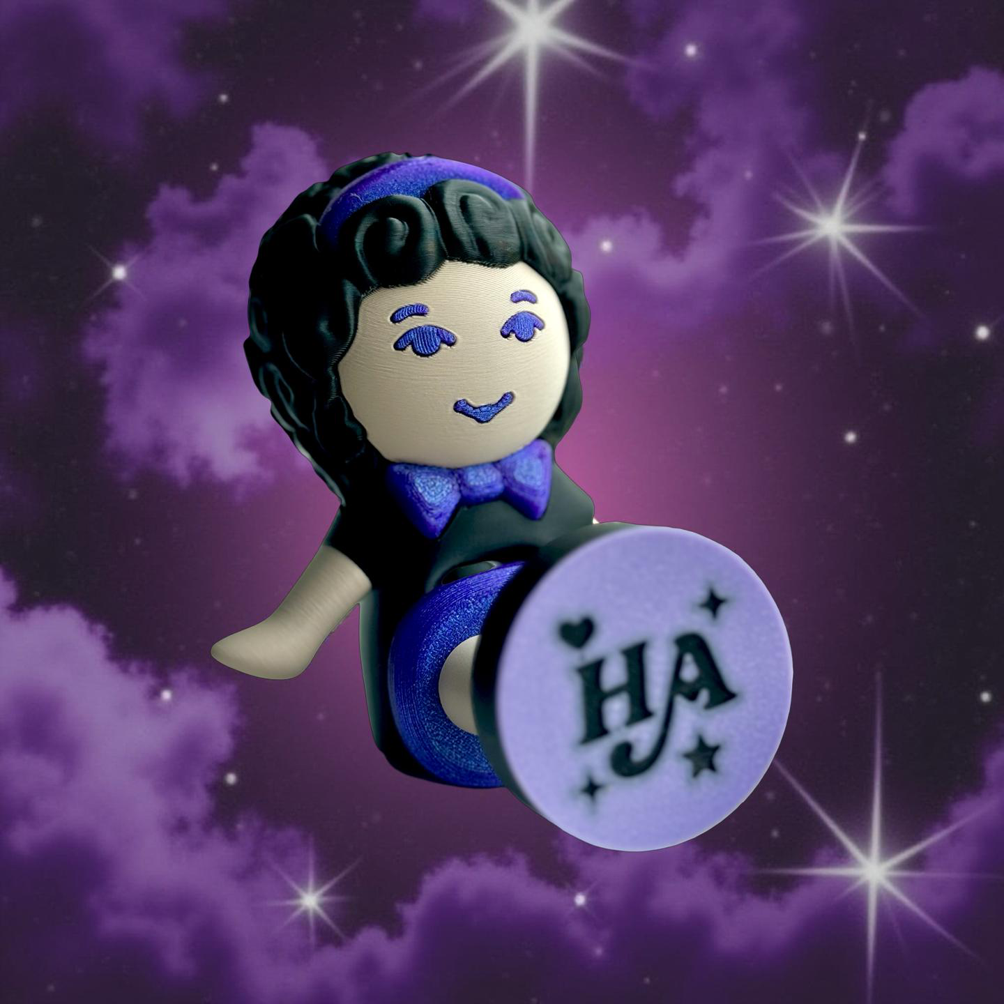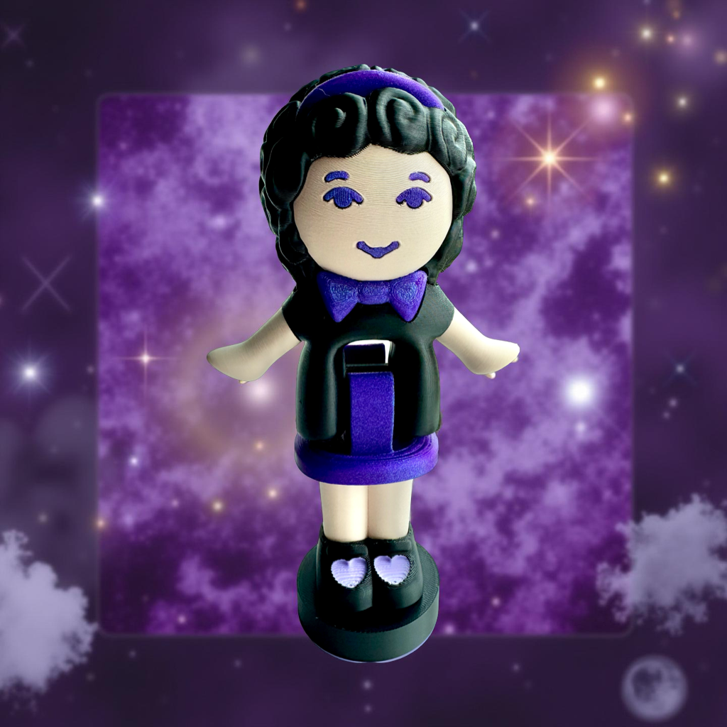 From shimmering purple eyes to sweet lavender hearts on her shoes, this retro darling is ready to be showcased! Plus, each doll features our Heartie Arts Logo for an extra touch of whimsy while she relaxes, eagerly waiting for her official release in 2 weeks! 💜🖤🕸️✨ Preorder now!
